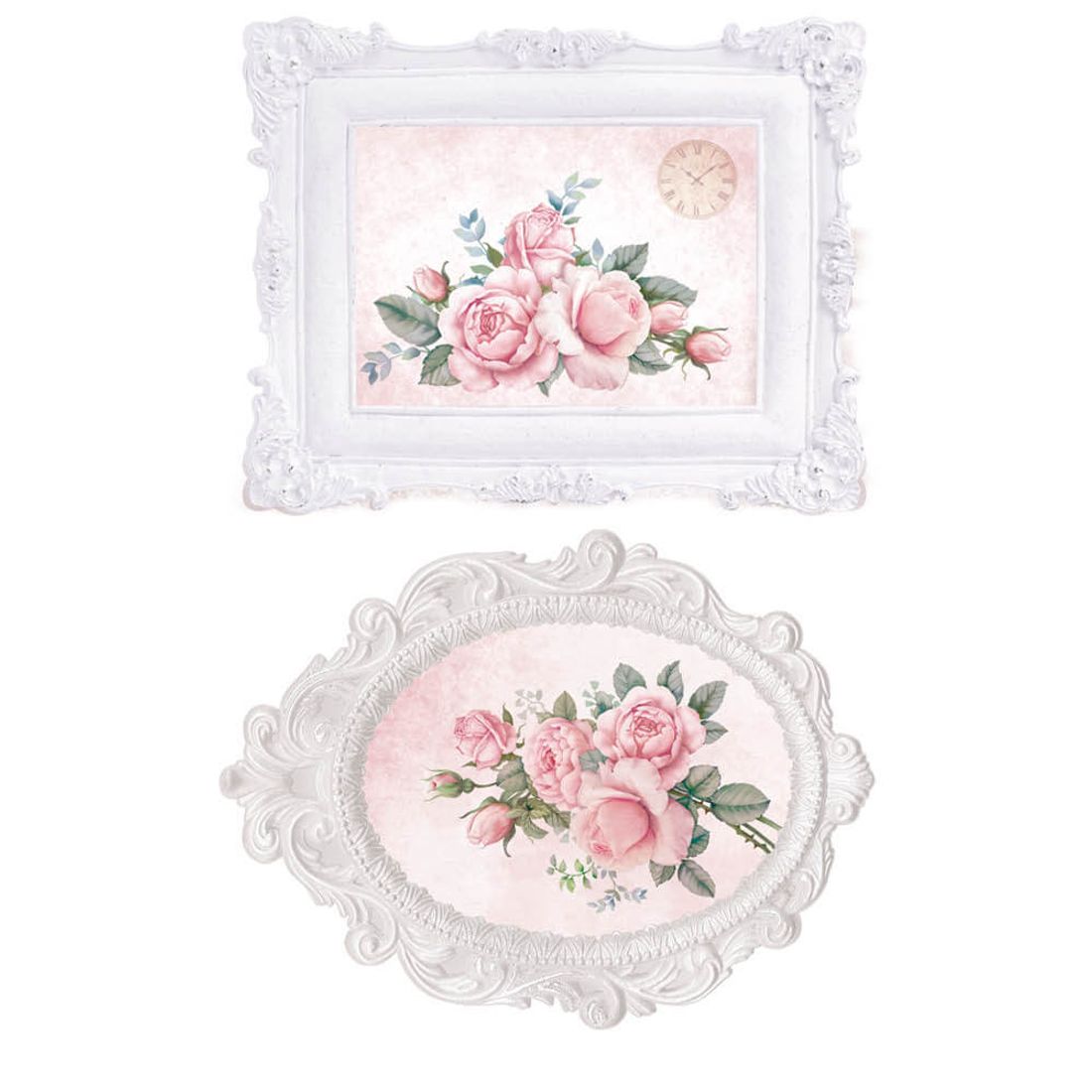 Aplique Decoupage Molduras com Rosas Apm4-492 em Papel e Mdf 4cm Litoarte