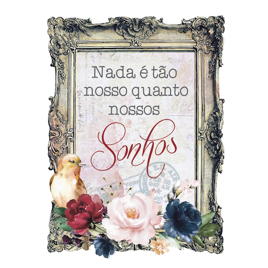 Aplique Papel Decoupage em Mdf Moldura com Frases Apm8-1370 8cm Litoarte
