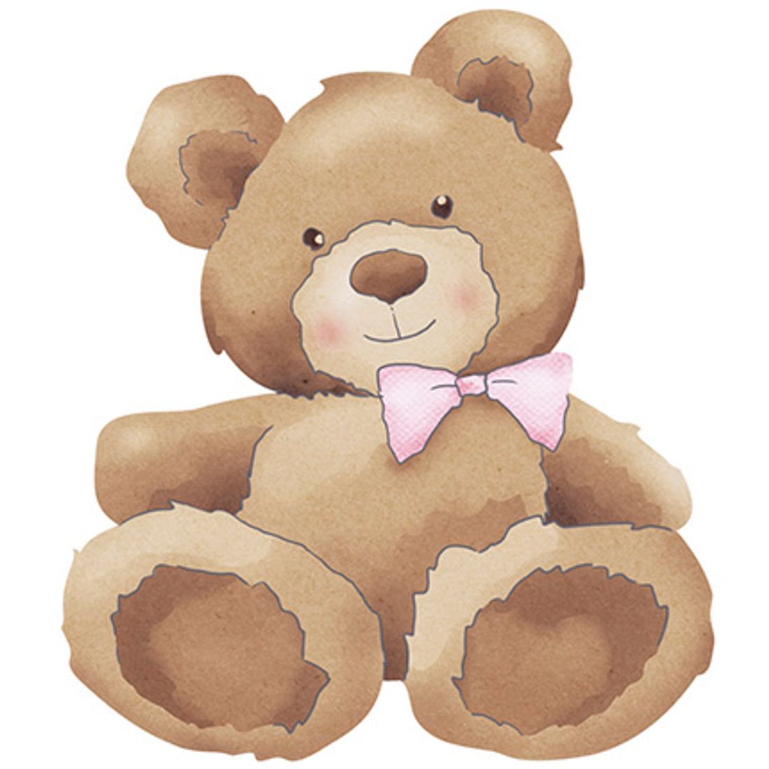 Aplique Decoupage Urso Laço Rosa APM8-850 em Papel e MDF 8cm Litoarte