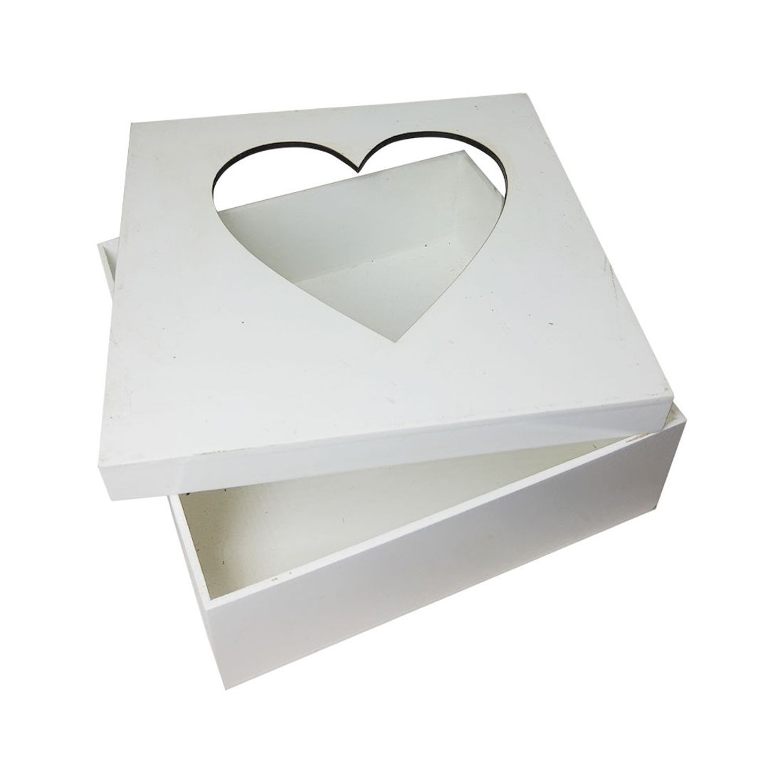Caixa Quadrada Tampa Sapato Coração e Película 15x15x5 Mdf Madeira Pintado