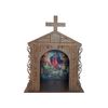 No interior, encontra-se uma imagem que inspira serenidade e devoção, tornando este oratório um local sagrado para contemplação e reflexão. Colocado em qualquer espaço, seja no quarto, na sala de estar ou em um ambiente de meditação, ele se torna um ponto focal de beleza e espiritualidade.