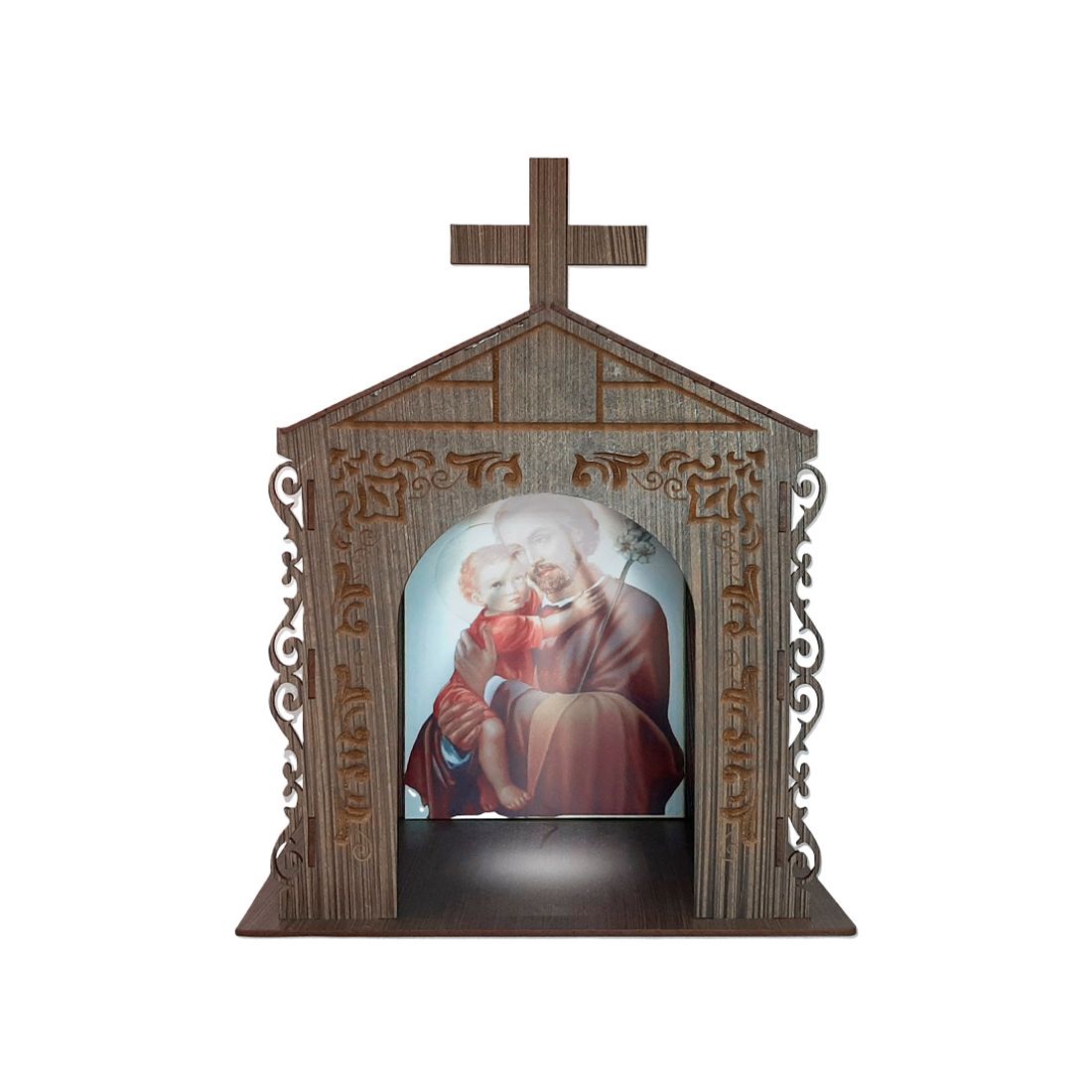 No interior, encontra-se uma imagem que inspira serenidade e devoção, tornando este oratório um local sagrado para contemplação e reflexão. Colocado em qualquer espaço, seja no quarto, na sala de estar ou em um ambiente de meditação, ele se torna um ponto focal de beleza e espiritualidade. Produto Acompanha LED na parte interior realçando o valor do Oratório