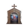 No interior, encontra-se uma imagem que inspira serenidade e devoção, tornando este oratório um local sagrado para contemplação e reflexão. Colocado em qualquer espaço, seja no quarto, na sala de estar ou em um ambiente de meditação, ele se torna um ponto focal de beleza e espiritualidade.