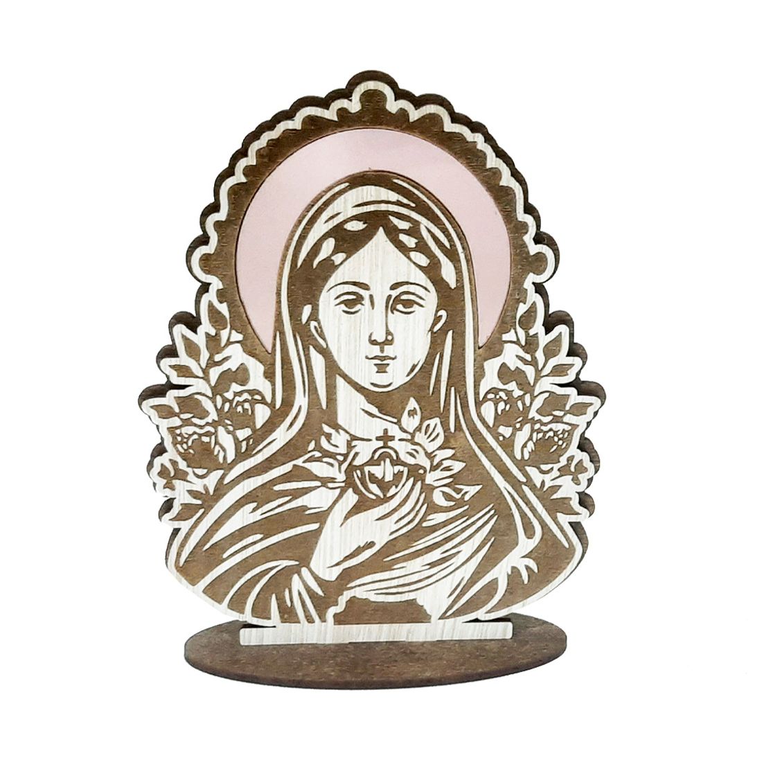 Apresentamos nosso Display Religioso em madeira MDF, uma peça de artesanato requintado que combina espiritualidade e durabilidade. Com detalhes meticulosos e curvas elegantes, ele é projetado para acomodar ícones religiosos com serenidade. Este display, pintado com tinta Gel imbuia, se destaca como um ponto de contemplação em qualquer ambiente, encapsulando espiritualidade e artesanato em perfeita harmonia. Possui detalhes em acrílico espelhado rose para realçar a peça.