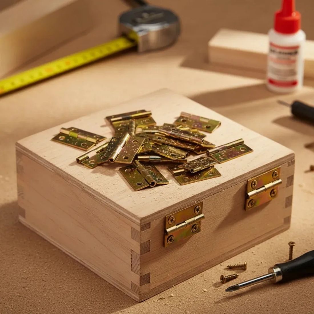 Pacote 100 Dobradiça Dourado para Caixa de Madeira 2x2,5cm Artesanato