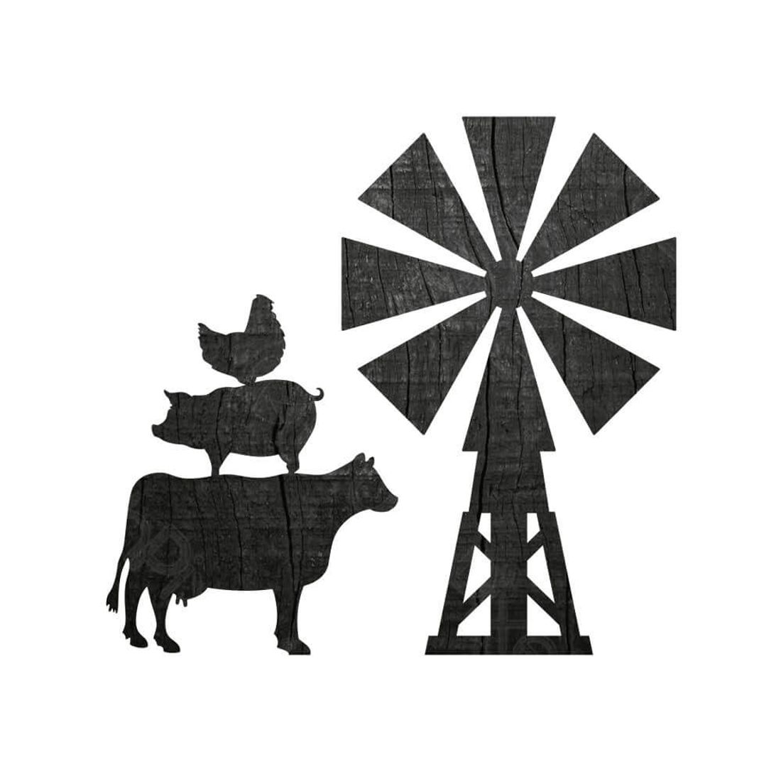 Kit 3 Aplique Decoupage Moinho e Animais Apm4-485 em Papel e Mdf 4cm Litoarte