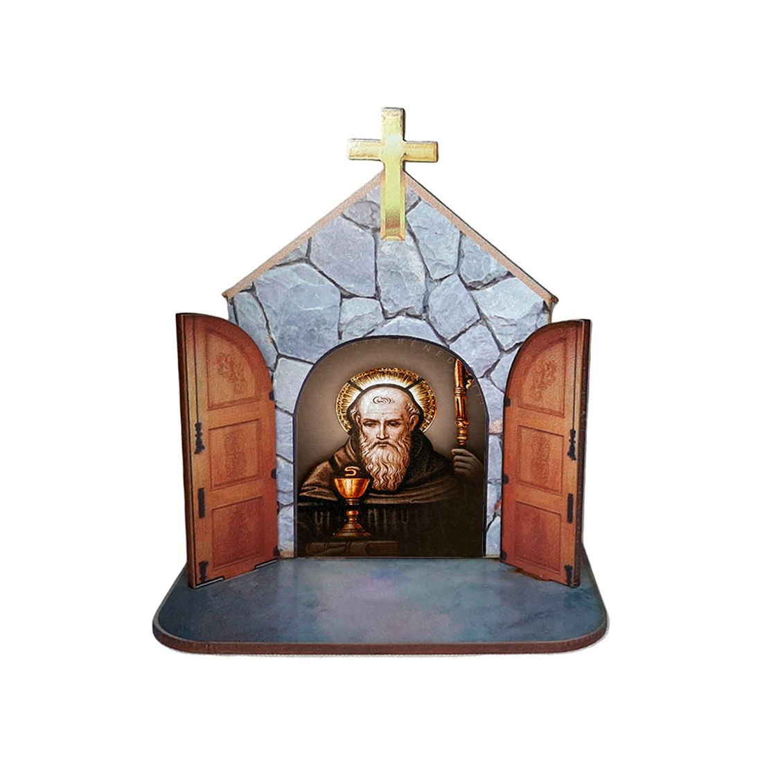 Mini Capela Oratório Display Enfeite de Mesa São Bento 12cm Mdf Madeira