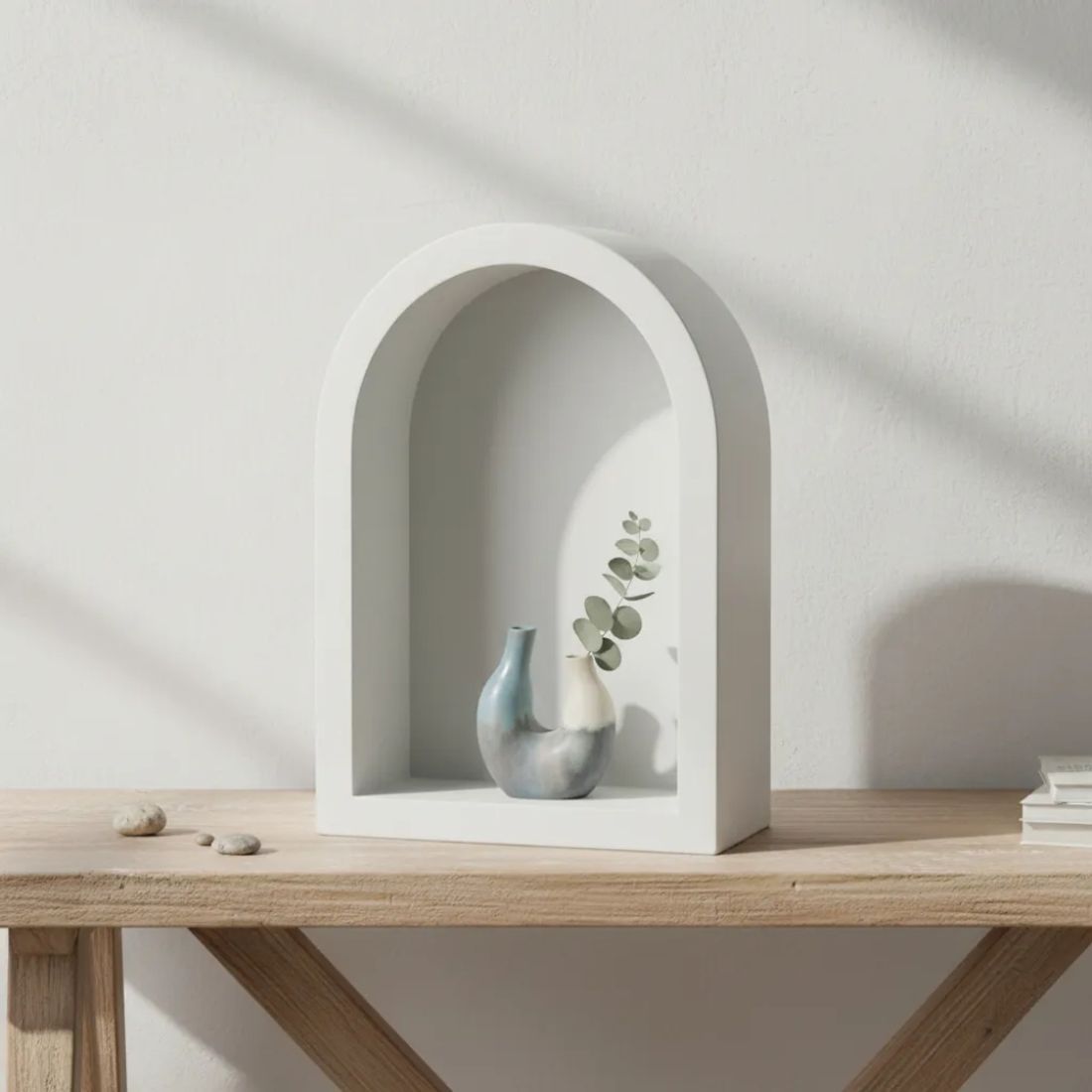 Oratório M em MDF Pintado, ideal para imagens sacras e decoração religiosa. Produzido em MDF de alta qualidade, com pintura profissional aplicada por revólver a compressor, previamente lixado e com fundo preparador, garantindo acabamento uniforme e refinado. Finalizado com tinta à base d?água, sem odor forte e com excelente padrão visual.