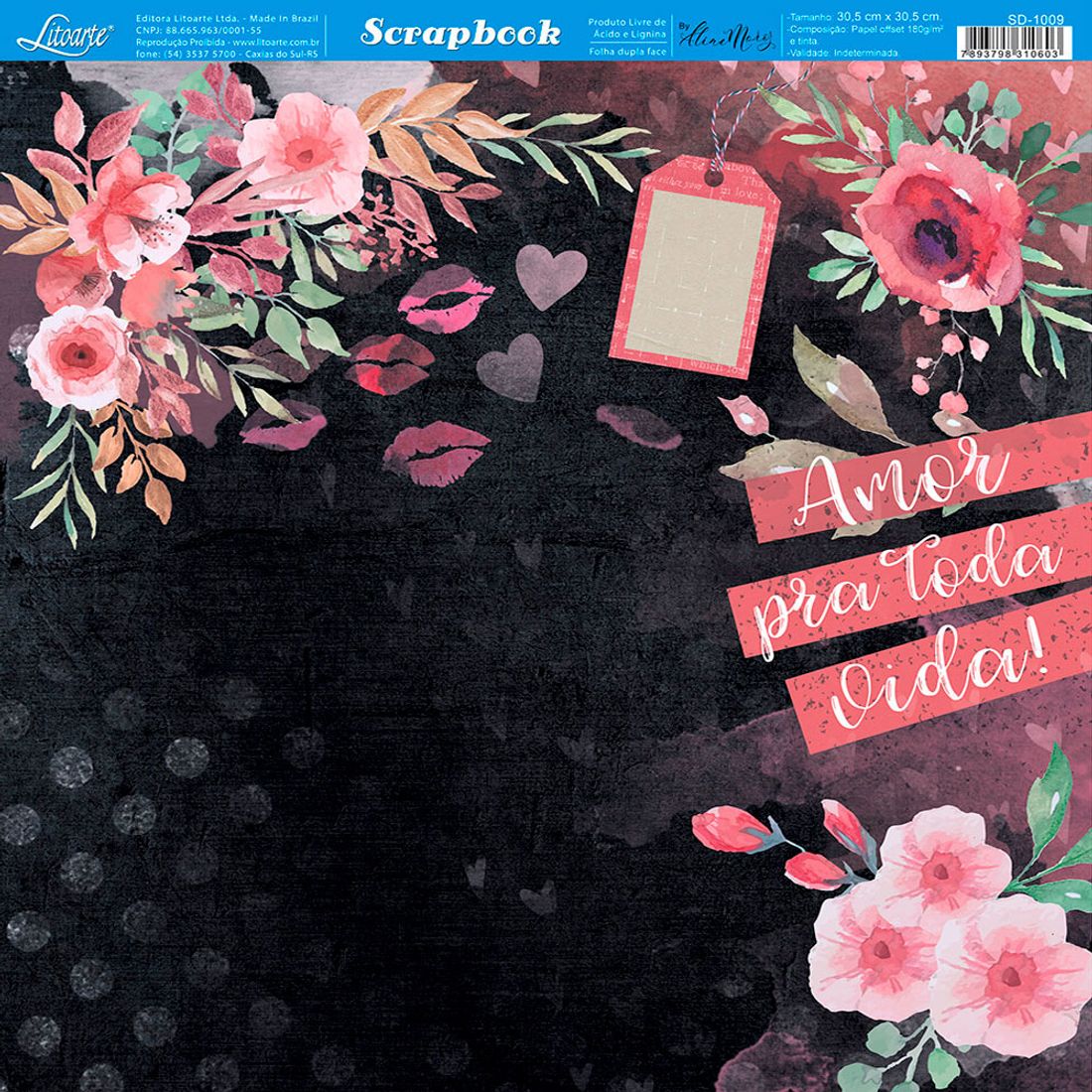 Papel Scrapbook SD-1009 Dupla Face Amor Toda Vida Poa 30,5x30,5cm Litoarte