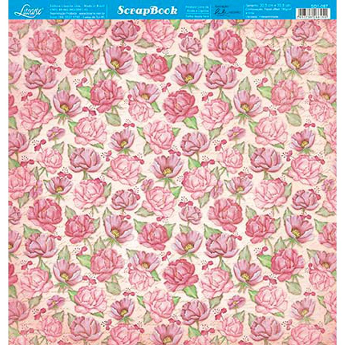 Papel Scrapbook SD1-087 30,5x30,5cm Peônias by Lili Negrão Litoarte