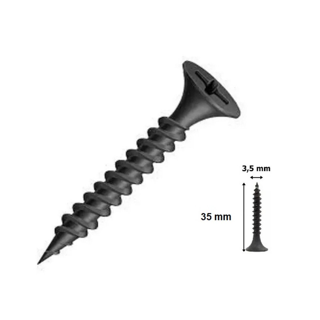 Dados técnicos: Diâmetro: 3,5 mm Comprimento: 35 mm Chave: Philips Cabeça: Trombeta Ponta: Agulha Rosca: Cortante Acabamento: Fosfatizado Quantidade: 01 Marca: Jomarca
