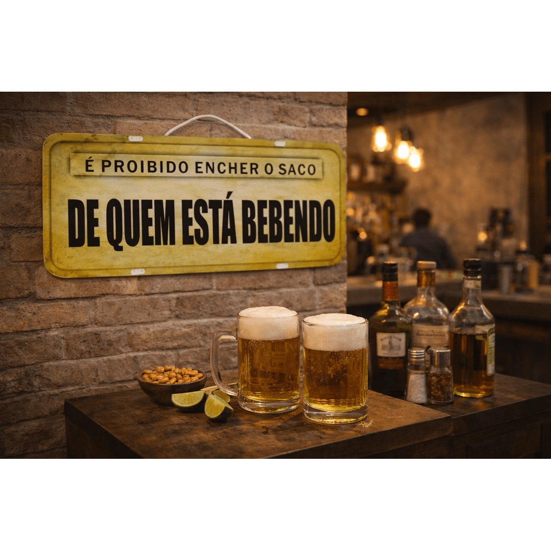 Dê personalidade, bom humor e clima descontraído ao seu bar, área gourmet, churrasqueira ou espaço de convivência com a Placa Decorativa ?É Proibido Encher o Saco de Quem Está Bebendo?. Produzida em MDF de alta qualidade, conta com adesivação premium, garantindo excelente definição de imagem e acabamento durável.