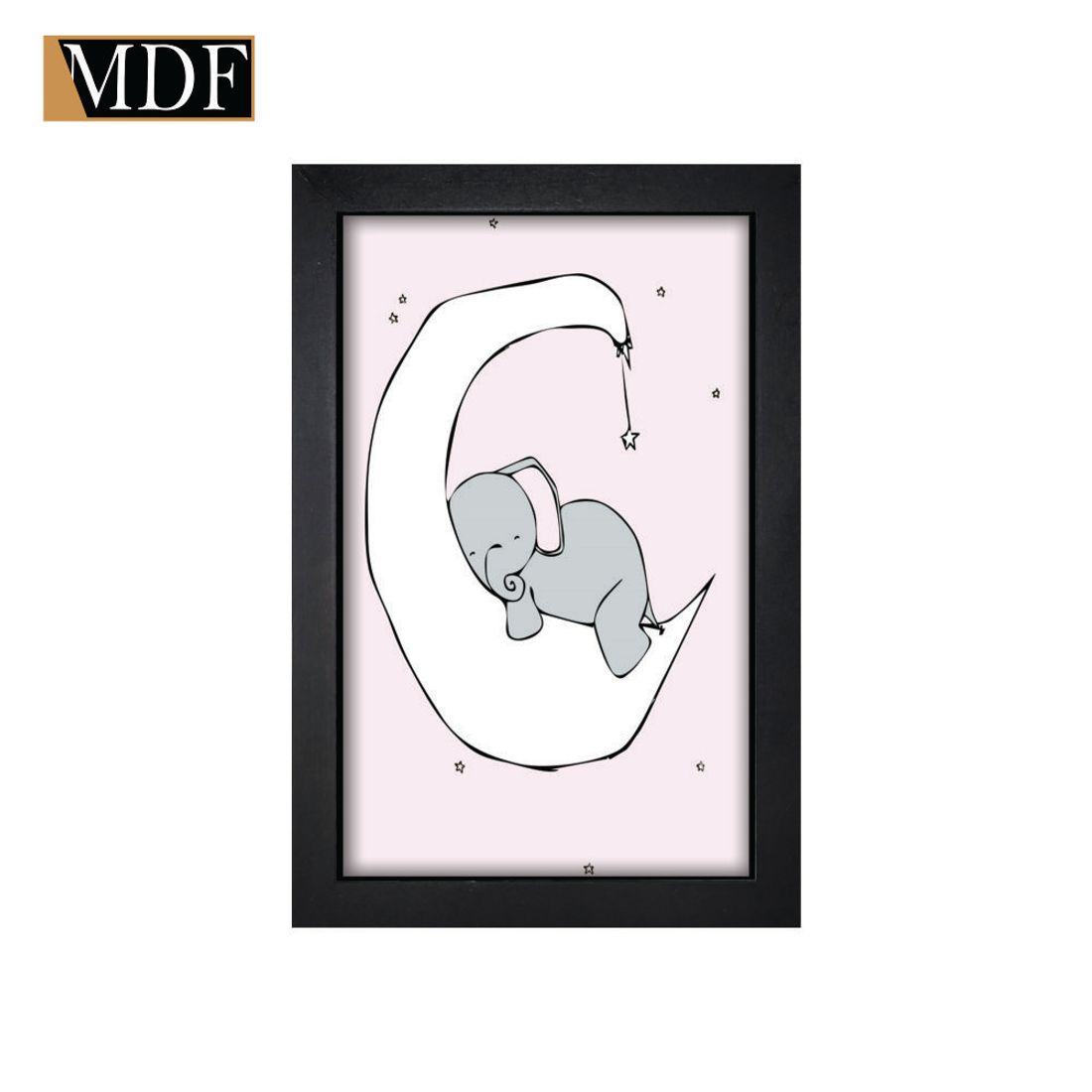 Quadro Decorativo Moldura Pintada Gel Elefante Dormindo 30x20 Mdf Adesivado