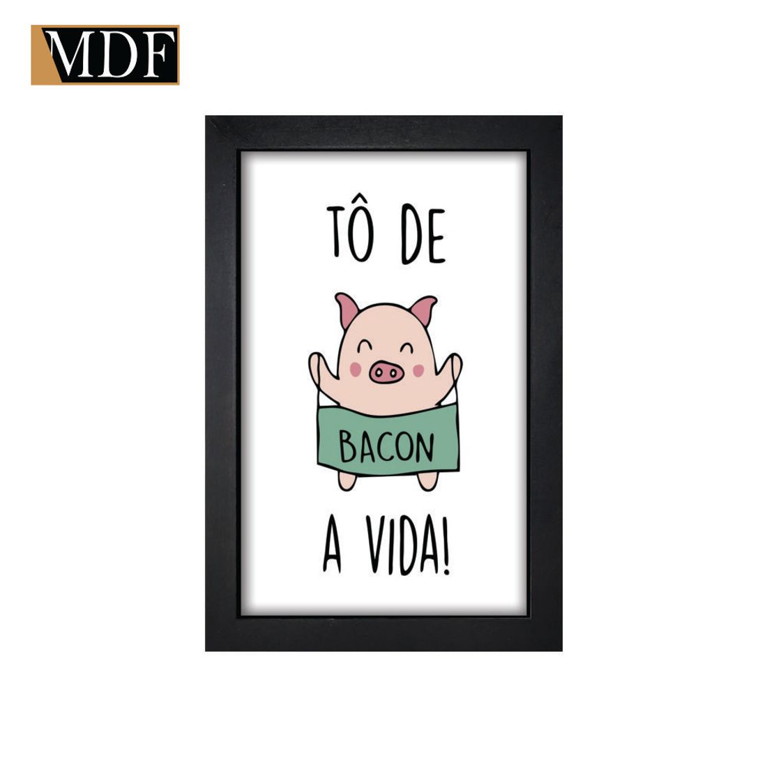 Quadro Decorativo Moldura Pintada Gel Tô de Bacon a Vida 30x20 Mdf Adesivado